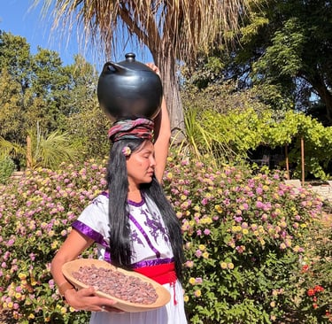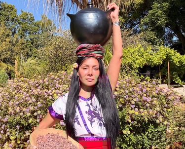 El cacao ceremonial es una medicina ancestral, un puente entre el corazón humano y el espíritu de la Tierra. Honrado por culturas como los Olmecas, Mayas y Mexicas, no era simple alimento, sino un portal sagrado, preparado con flores, miel y especias para abrir el alma y sanar.
